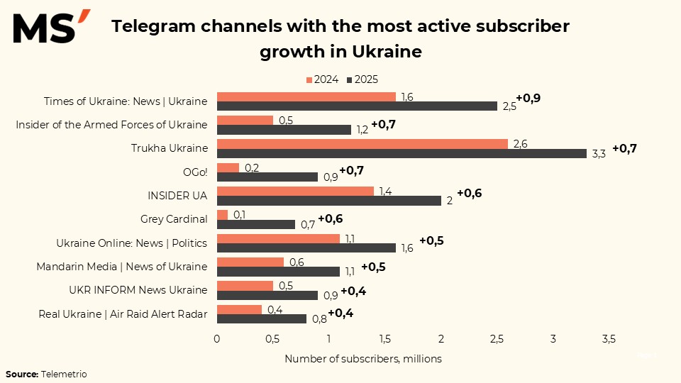 What is important is that growth is driven not only by long-established media brands, but also by channels that previously had relatively small audiences. This indicates a high level of market mobility and a constant redistribution of user attention. Telegram has firmly established itself as a key news consumption platform, where success depends on a strong sense of context, an understanding of audience demand, and the ability to match the pace of everyday life.
